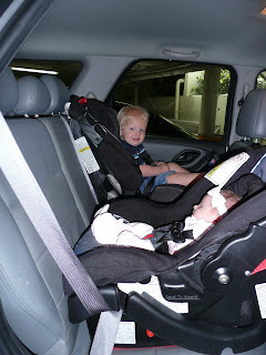Josh's mom came to visit this past weekend. This was her first time seeing Eliana and she has not seen Ethan since Jamie's wedding. Ethan had a blast with Grandma. Grandma bought him his first Dallas Cowboys outfit. This is a HUGE deal as Grandma is a Denver Broncos fan through and through!! Ethan also got some new shoes and some cool new books. We spent one day at the mall where Grandma pushed Ethan in a cool car stroller and had his first Happy Meal. We would not let him have French Fries though!